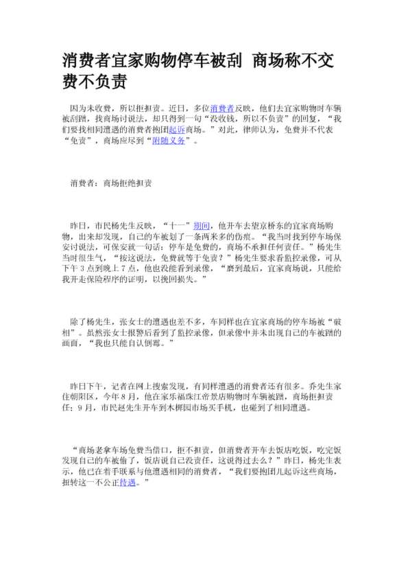 消費者宜家購物停車被刮 商場稱不交費不負責(24.54KB)