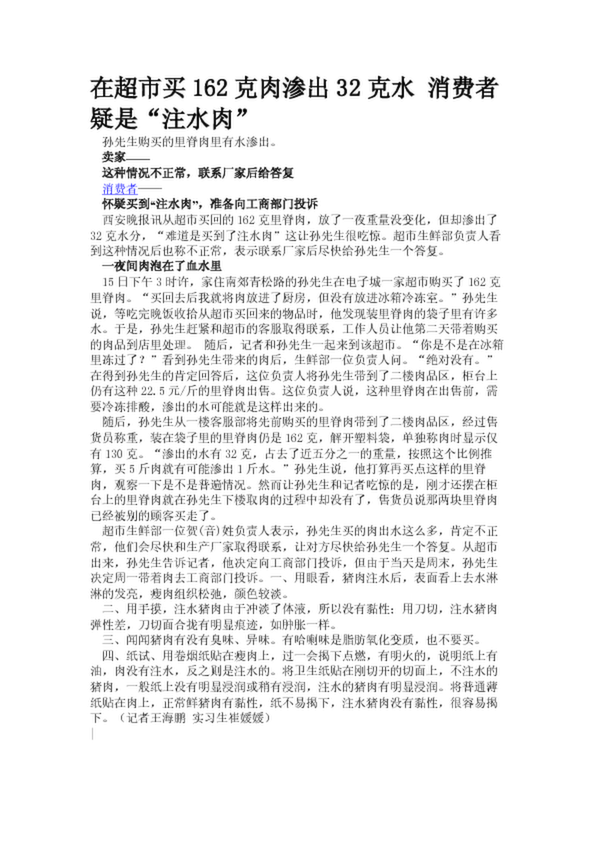 在超市買162克肉滲出32克水 消費者疑是“注水肉”(21.38KB)