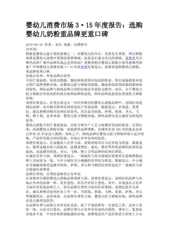 嬰幼兒消費(fèi)市場3·15年度報告:選購嬰幼兒奶粉重品牌更重口碑