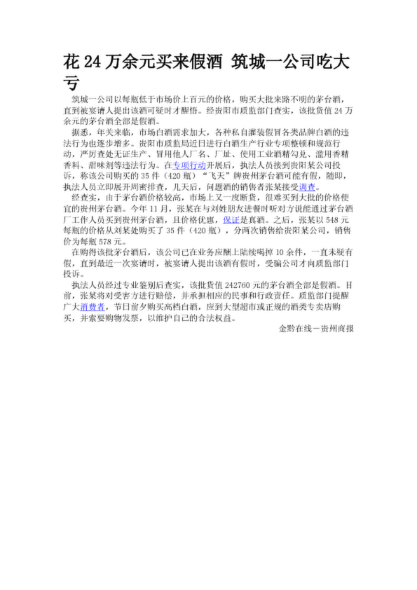 花24萬余元買來假酒 筑城一公司吃大虧(18.71KB)