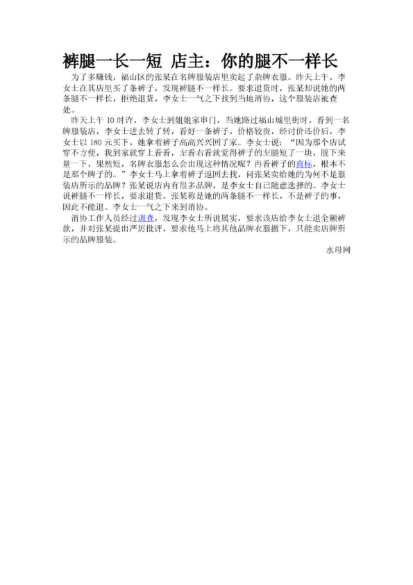褲腿一長一短 店主:你的腿不一樣長(17.35KB)