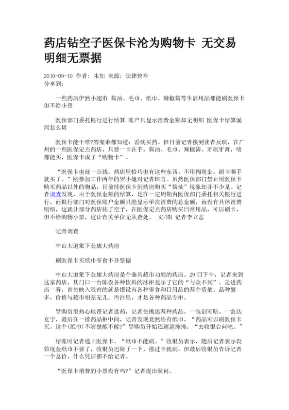 藥店鉆空子醫保卡淪為購物卡 無交易明細無票據(7.43KB)