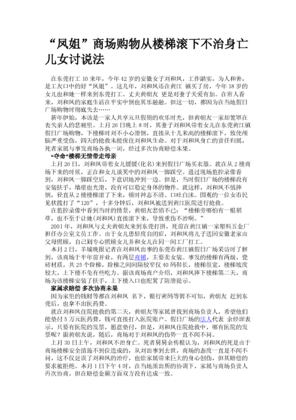 “鳳姐”商場(chǎng)購(gòu)物從樓梯滾下不治身亡兒女討說(shuō)法