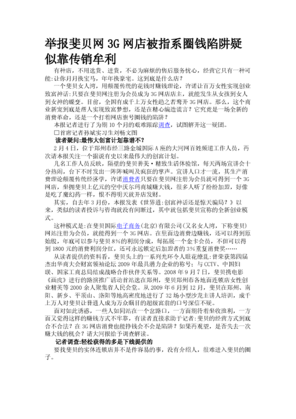 舉報(bào)斐貝網(wǎng)3G網(wǎng)店被指系圈錢(qián)陷阱疑似靠傳銷(xiāo)牟利
