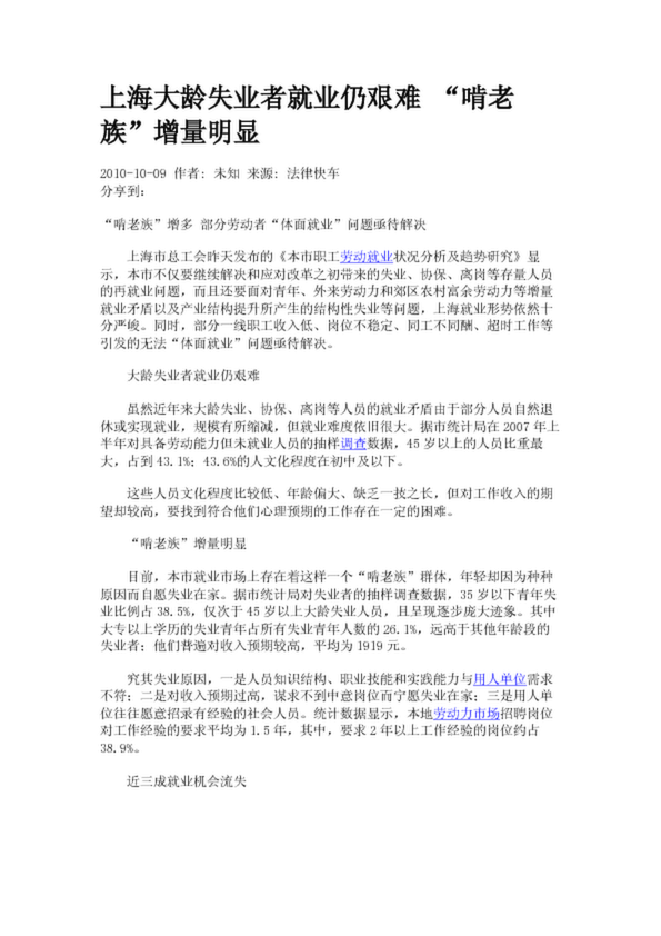 上海大齡失業者就業仍艱難 “啃老族”增量明顯(7.16KB)