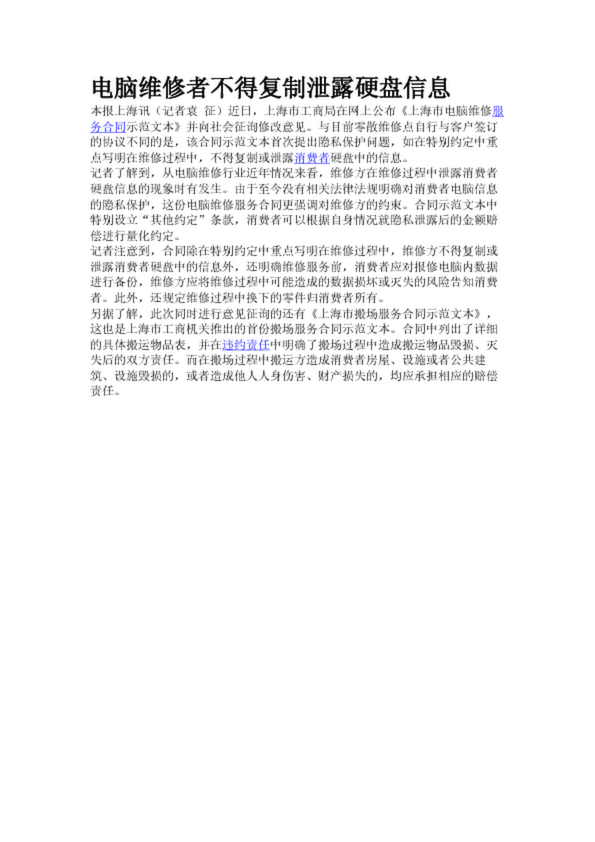 電腦維修者不得復制泄露硬盤信息(17.67KB)