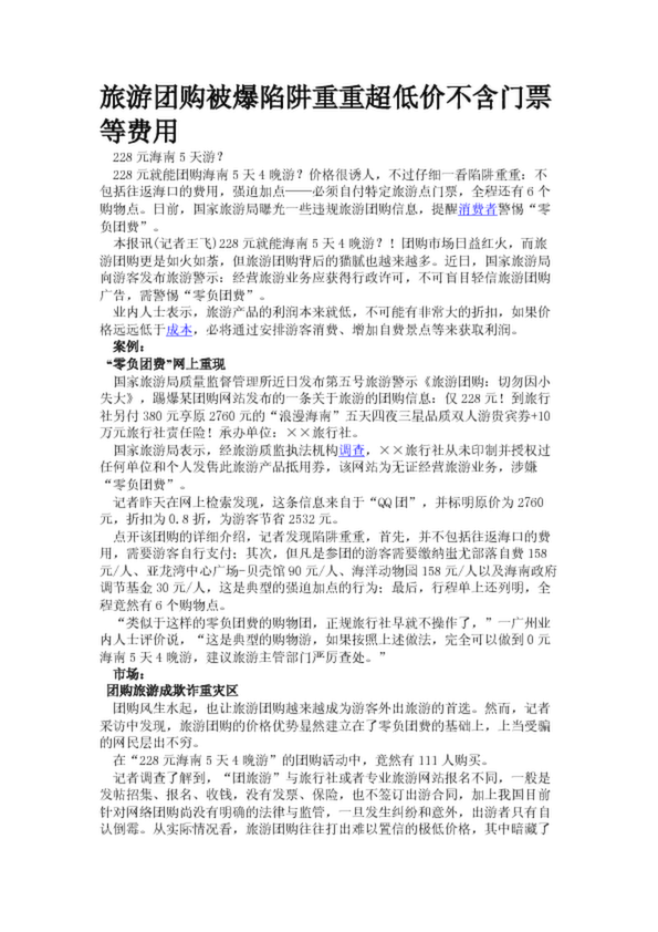 旅游團(tuán)購被爆陷阱重重超低價不含門票等費(fèi)用