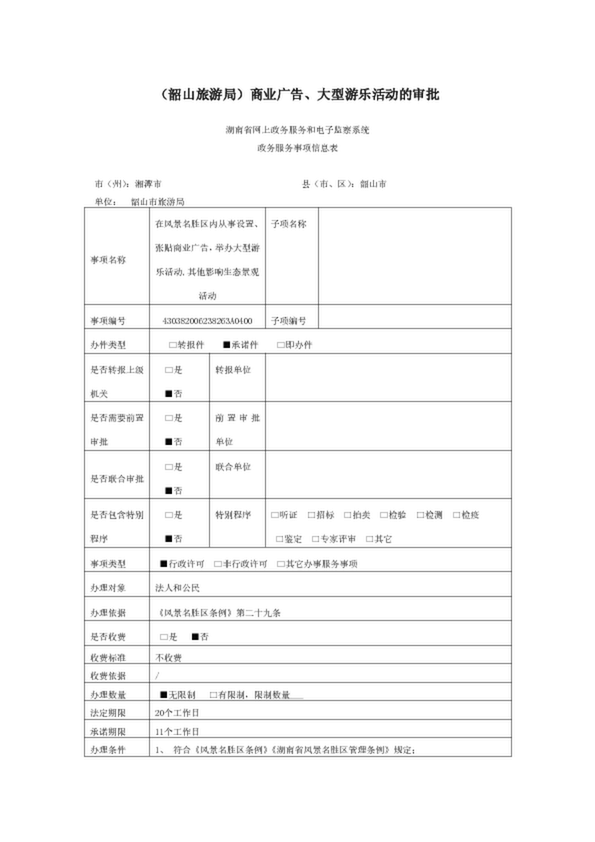 (韶山旅游局)商業(yè)廣告、大型游樂(lè)活動(dòng)的審批