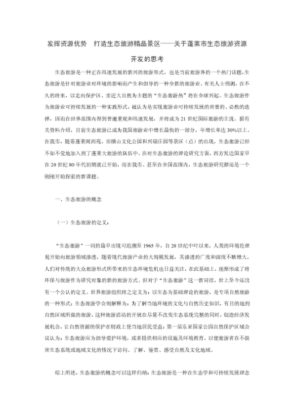 發揮資源優勢 打造生態旅游精品景區——關于蓬萊市生態旅游資源開發的思考(44.00KB)