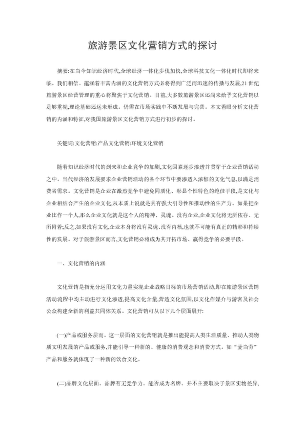 旅游景區文化營銷方式的探討(21.00KB)