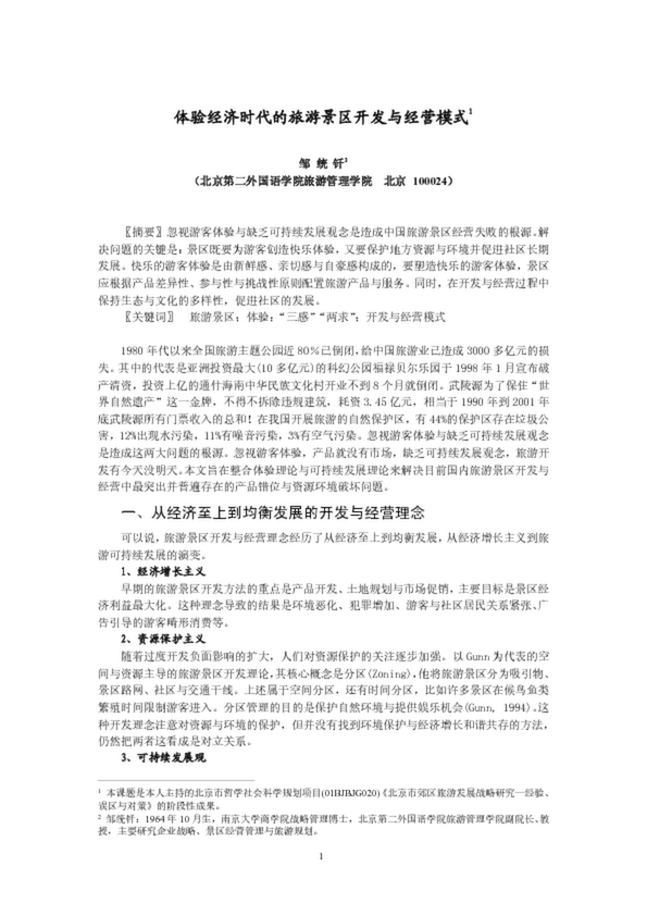 體驗(yàn)經(jīng)濟(jì)時代的旅游景區(qū)開發(fā)與經(jīng)營模式