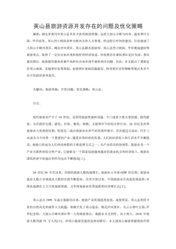 英山縣旅游資源開發(fā)存在的問(wèn)題及優(yōu)化策略