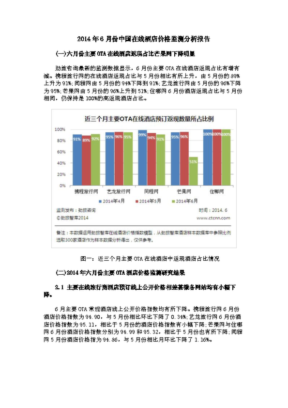 2014年6月份中國在線酒店價格監測分析報告(5.39KB)