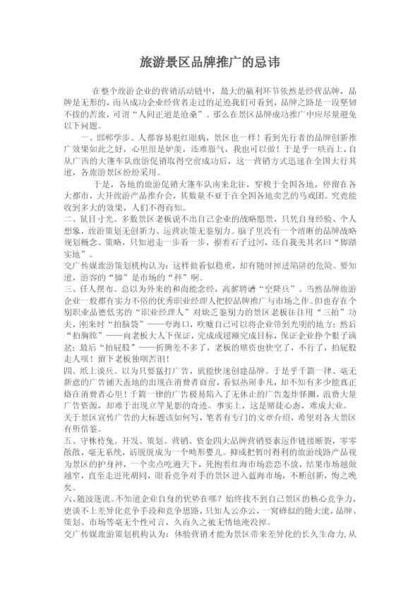 旅游景區品牌推廣的忌諱(16.50KB)