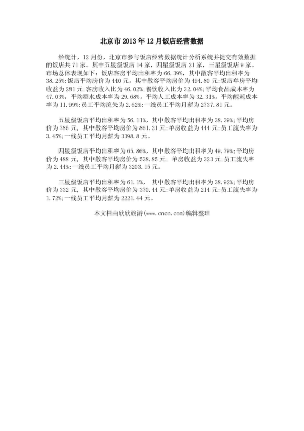 北京市2013年12月飯店經(jīng)營(yíng)數(shù)據(jù)