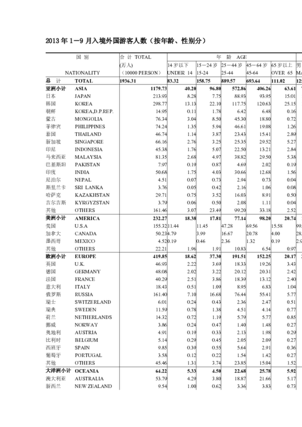 2013年1-9月入境外國游客人數(按年齡、性別分)(0.12MB)