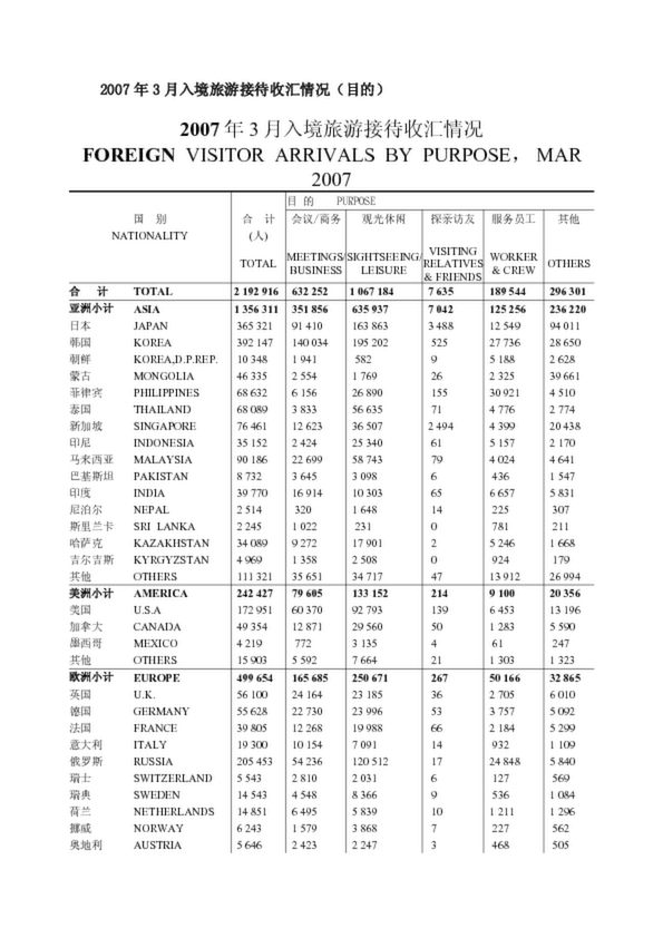2007年3月入境旅游接待收匯情況(目的)(0.21MB)